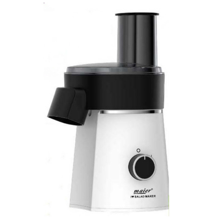 این دستگاه دارای موتور قدرتمند مسی با توان مصرفی 800 وات است. بدنه از جنس پلیمر مقاوم و محکم ساخته شده است. دارای 7 تیغه از جنس استیل ضد زنگ میباشد که هر کدام کاربرد خاص خود را داشته و نیاز های شما را به طور کامل برطرف می کند. لازم به ذکر است یکی از تیغه های دستگاه برای تهیه برش نگینی یا سالاد شیرازی طراحی شده است . تیغه ها و سایر لوازم جانبی دستگاه قابلیت شست و شو در ماشین ظرفشویی را دارند. طراحی رنده مایر رنگ این محصول سفید و مشکی است. دارای پایه ضد لغزش برای ثابت ماندن دستگاه بر روی سطوح است. نوع عملکرد به صورت چرخش تیغه می باشد . یک دکمه برای خاموش و روشن شدن دستگاه بر روی بدنه طراحی شده است. لذا کار با این رنده برقی بسیار آسان بوده و کافی است تا رنده ی مورد نظر را در جایگاه قرار دهید و دکمه ی روشن را بزنید.