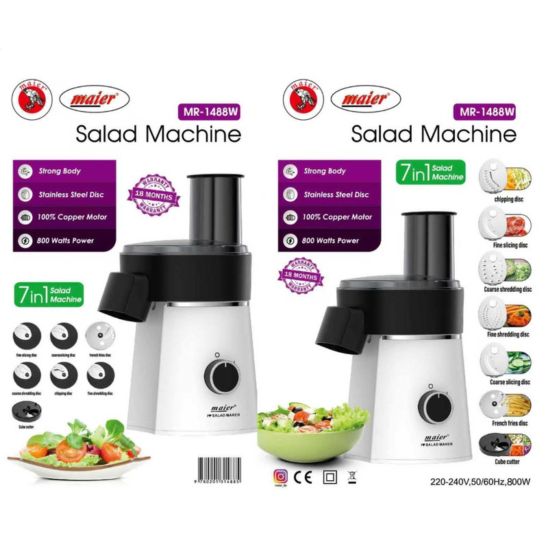 این دستگاه دارای موتور قدرتمند مسی با توان مصرفی 800 وات است. بدنه از جنس پلیمر مقاوم و محکم ساخته شده است. دارای 7 تیغه از جنس استیل ضد زنگ میباشد که هر کدام کاربرد خاص خود را داشته و نیاز های شما را به طور کامل برطرف می کند. لازم به ذکر است یکی از تیغه های دستگاه برای تهیه برش نگینی یا سالاد شیرازی طراحی شده است . تیغه ها و سایر لوازم جانبی دستگاه قابلیت شست و شو در ماشین ظرفشویی را دارند. طراحی رنده مایر رنگ این محصول سفید و مشکی است. دارای پایه ضد لغزش برای ثابت ماندن دستگاه بر روی سطوح است. نوع عملکرد به صورت چرخش تیغه می باشد . یک دکمه برای خاموش و روشن شدن دستگاه بر روی بدنه طراحی شده است. لذا کار با این رنده برقی بسیار آسان بوده و کافی است تا رنده ی مورد نظر را در جایگاه قرار دهید و دکمه ی روشن را بزنید.