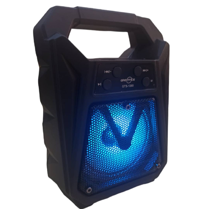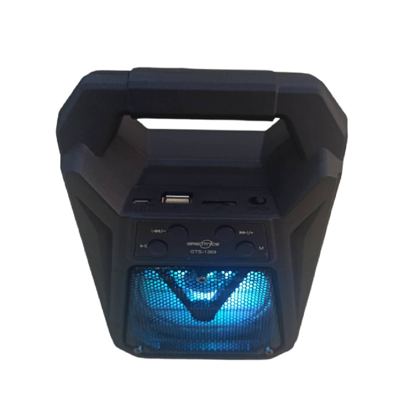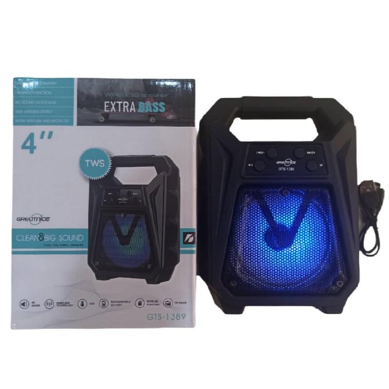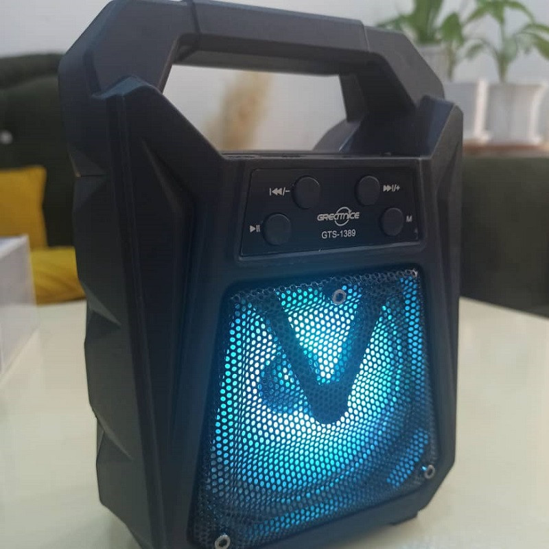 اسپیکر پرتابل GTS-1389 را می توان به شکل ایستاده به کار برد و علاوه بر بلوتوث با کارت حافظه و فلش مموری سازگاری دارد و همچنین وجود یک ساب 3 اینچی باعث شده است تا بتوانید از قدرت صدای شگفت انگیز بهره ببرید، ویژگی شگفت انگیز دیگر این اسپیکر، وجود یک رقص نوررنگی در هنگام پخش موزیک است. با توجه به سایز بسیار مناسب آن و قابلیت جایگیری در کوله پشتی و چمدان گزینه بسیار عالی برای مسافرت و کمپینگ و همچنین استفاده داخل خودرو و قطار و... میباشد. شارژ دهی مناسب و همچنین قابلیت استفاده به عنوان پاور بانک برای مواقع اضطراری و مزیتهای دیگر این اسپیکر مقرون به صرفه را به گزینه مناسبی در میان اسپیکر های مشابه تبدیل کرده است.